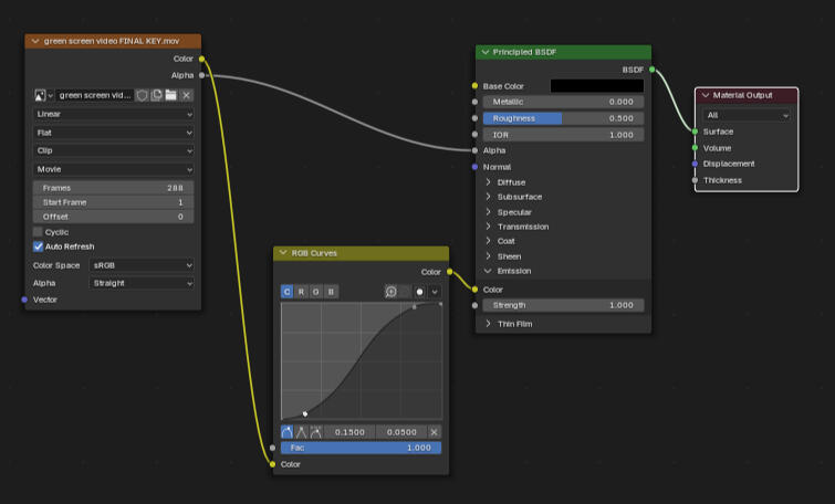 After exporting the keyed footage into Blender, I also adjusted the RGB curves to better match the harsh, high-contrast lighting of the scene.